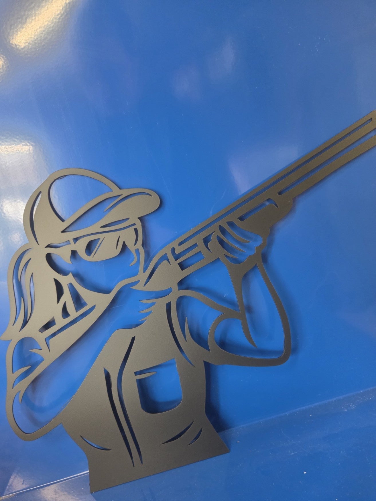 Striking wall art featuring bold silhouettes of male or female hunters, perfect for outdoor enthusiasts. A rugged, stylish tribute to the spirit of the hunt—ideal for cabins, man caves, or rustic home décor.